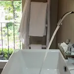 浴室内配有浴缸 和淋浴;该住宿场所还俯瞰花园.